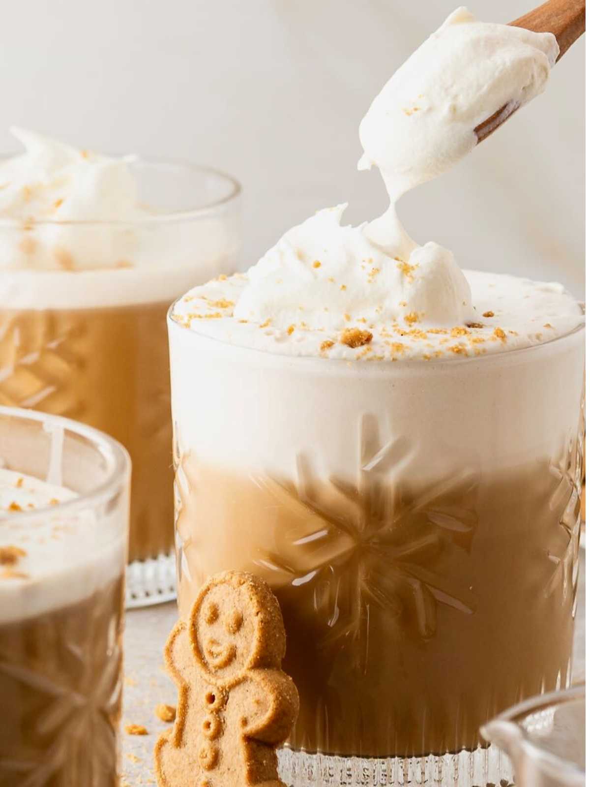 - Festive Latte: Top with whipped cream or crushed gingerbread men cookies for a festive flavor that's perfect for Christmas morning.